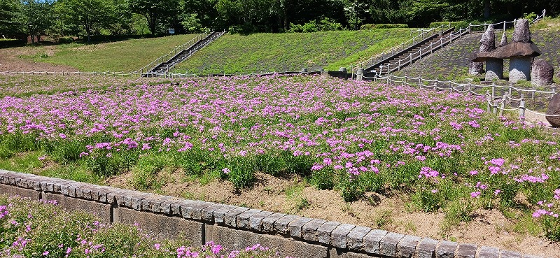2025年6月17日。白石市小原のスパッシュランドパークで見頃を迎えている宿根フロックスを撮影しました。見頃は6月第三週末まで。